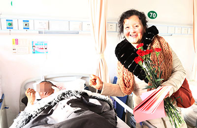虹口区抗癌俱乐部吴国芳会长与会员在曹院长的陪同下前往病区,为患者们献上康乃馨,表达暖暖的节日祝福。一病区的患者激动的握着曹院长的手说:这还是我第一次听说医院里送鲜花,你们医院真的太有心,这一束漂亮的康乃馨让我本来压抑的心情,都感觉开朗了不少…